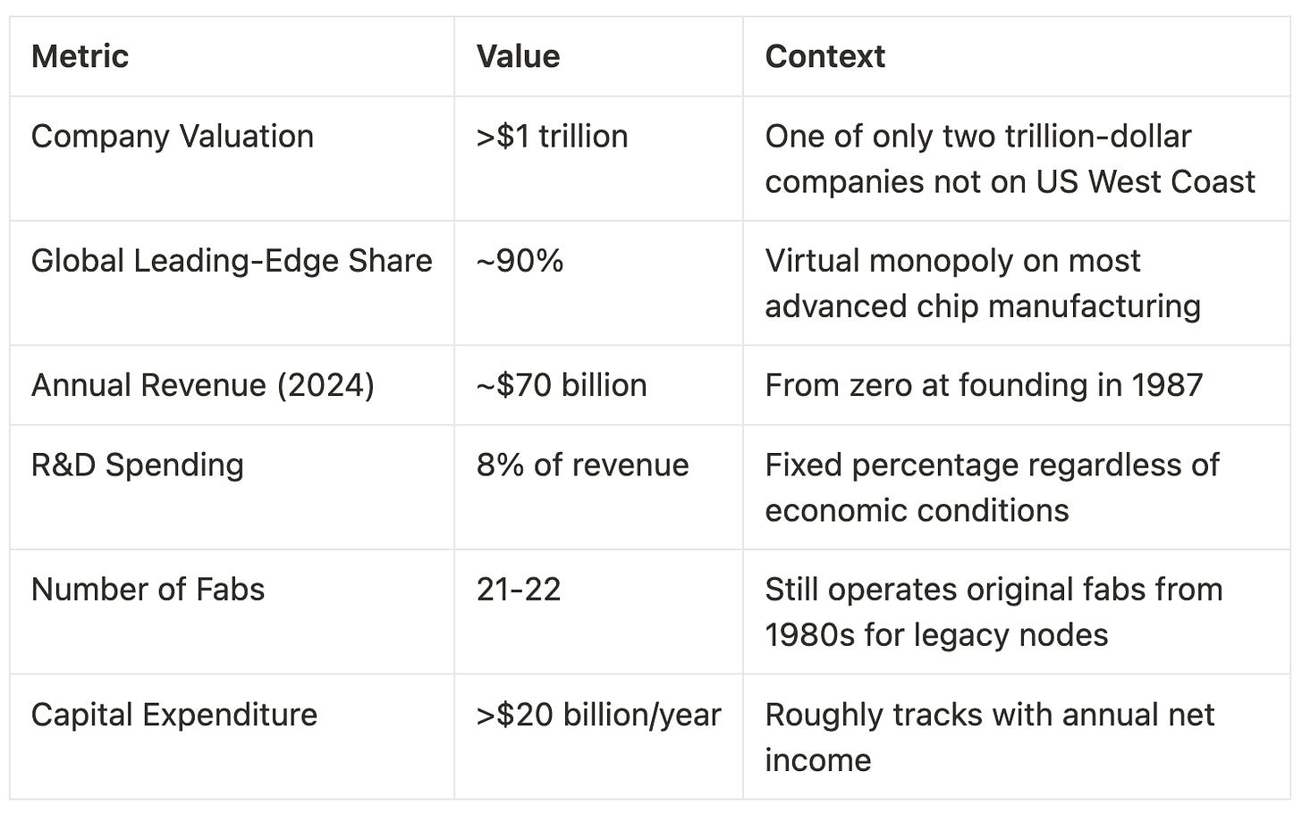 Enabled the fabless semiconductor revolution by providing manufacturing to companies like NVIDIA, Qualcomm, and Broadcom