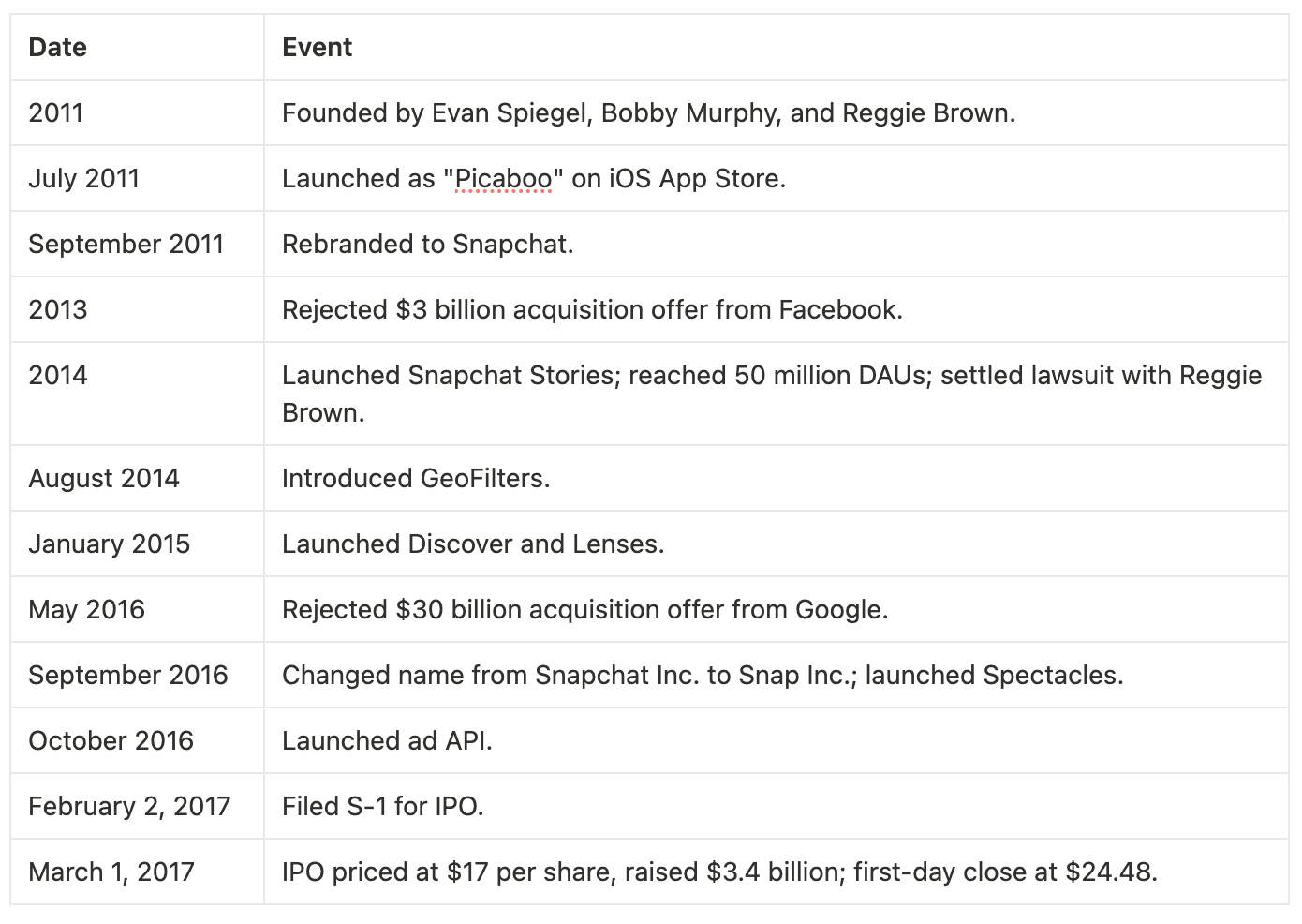 Key Dates in Snap Inc.’s History